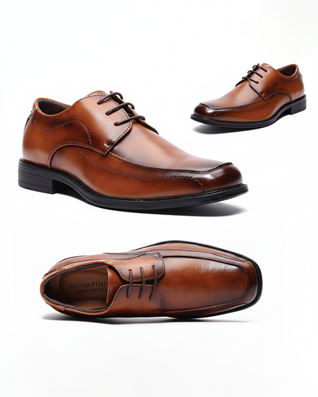Faux Grain Leather Upper Uniform Topstitching Memory Foam Cushioned Insole Lightweight TPR Outsole