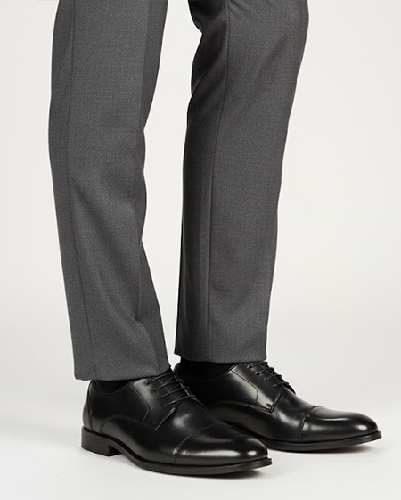 Faux Grain Leather Upper Cap-Toe with Textured Collar Memory Foam Cushioned Insole Lightweight TPR Outsole