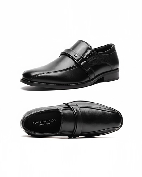 Faux Grain Leather Upper Embossed Pattern with Band Deta Memory Foam Cushioned Insole Lightweight TPR Outsole